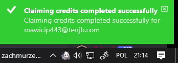 - Check the 'Toast Notifications' checkbox to receive notifications about Credit Claimer results. Example: