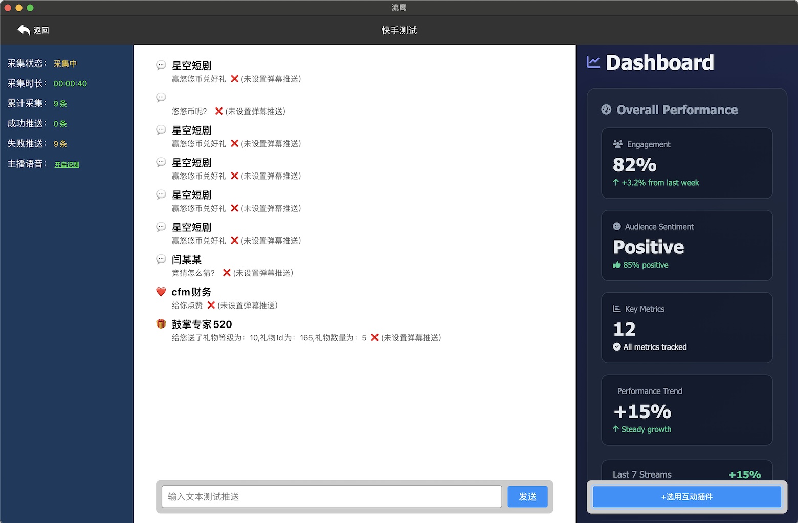 在弹幕采集和主播讲解过程中,大家可根据自己的需求随时切换到任意一款插件。