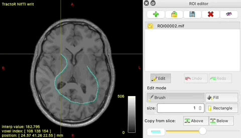 - Open any image in mrview and create a new ROI in the ROI editor