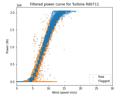 @nbodini Regarding the comment "The filtered power curve plots look like they are removing way too many points, especially at low wind speeds", I totally agree that the plots in the Drive folder you shared look good. I should have clarified that I was referring to the plots generated in the example 03 notebook. There it looks to me like too many points are being filtered out at low wind speed/power. Do you know why this might be the case? |