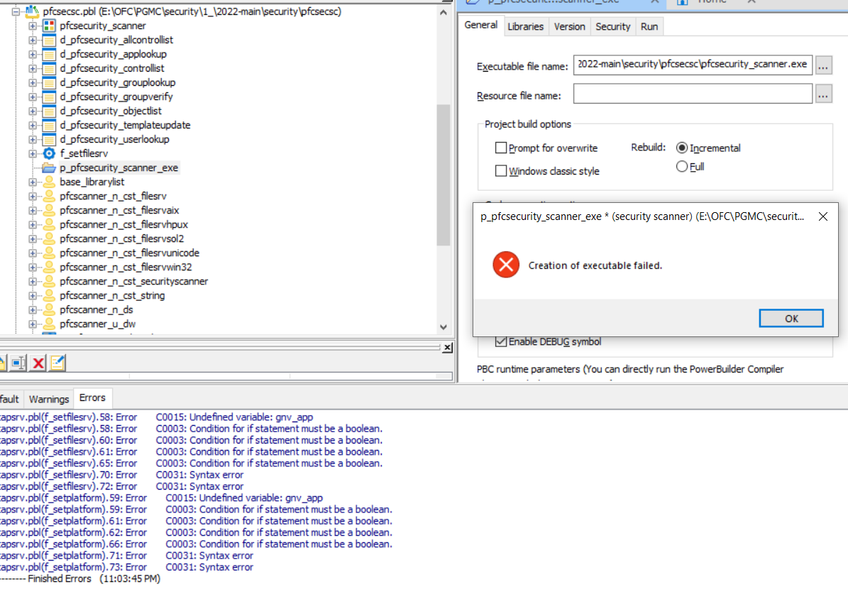 WOuld need your help to learn how to build the pfc user security into utility. I setup as per picture attached. But scanner always give me errors when full build it. After compile and build into exe, it didnt run after i choose 'Scan Application' i mean, the _targetselection window didn show. I got the second picture when i try to compile it. Please help me if have miss anything? thanks in advance.