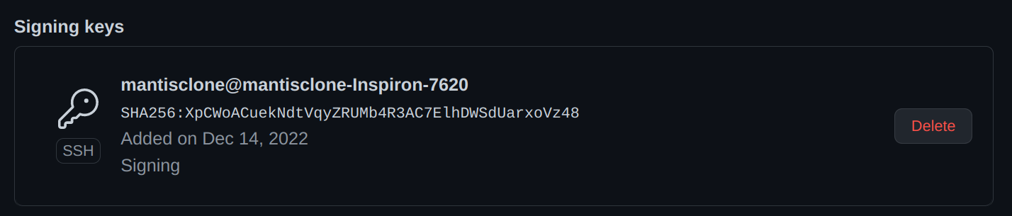 $ git config --global gpg.format ssh $ git config --global user.signingkey ~/.ssh/id_ed25519.pub - Add your SSH signing key to Github