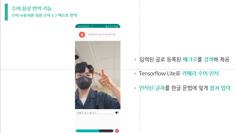 이러한 내용을 바탕으로 농인들을 위한 수어 번역 기능의 필요성을 절실히 깨닫게 되었고, 저희는 수어 번역 기능을 제공하는 모바일 어플리케이션 손말을 기획하게 되었습니다.