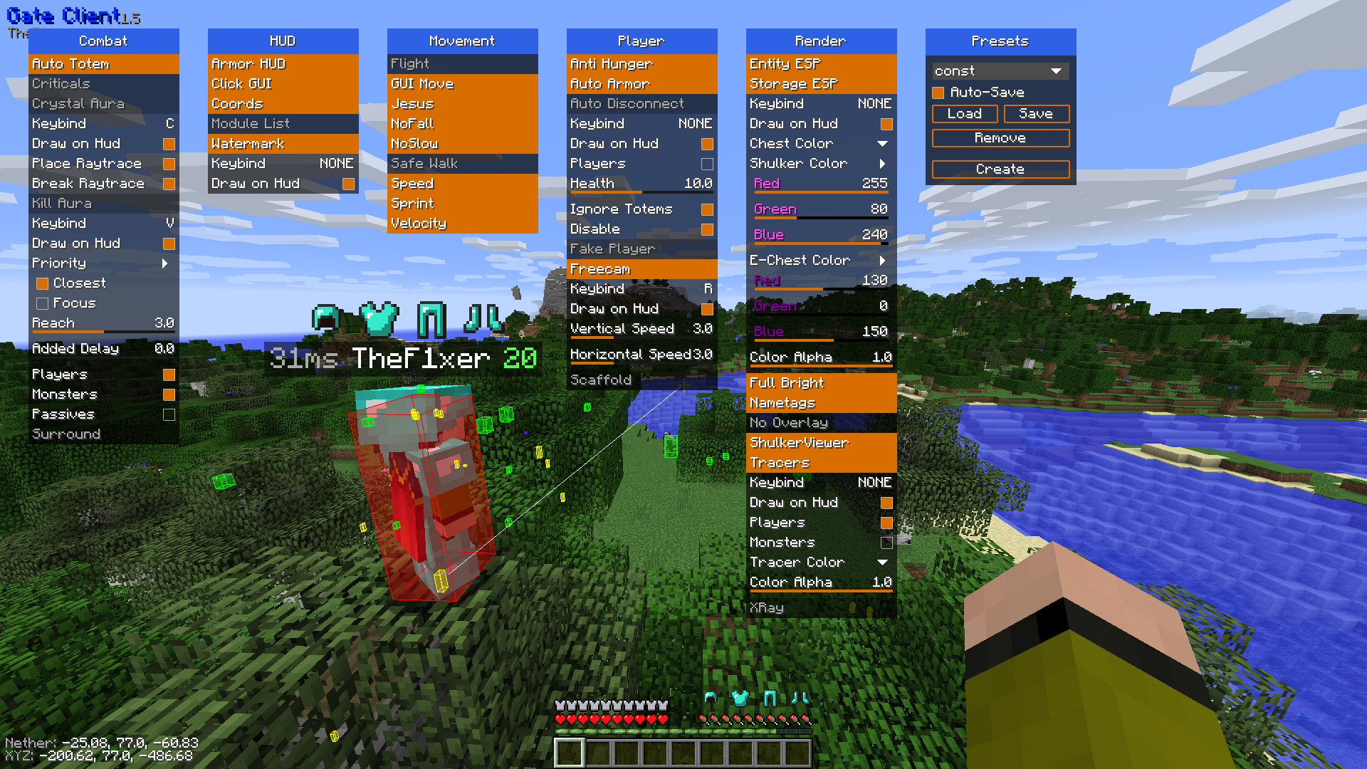 Gate Client is a free and open-source Forge Mod for Minecraft 1.12.2 developed by TheF1xer since October 2020 for fun. This utility mod takes inspiration from many other open-source clients, but every single line was written for this mod.