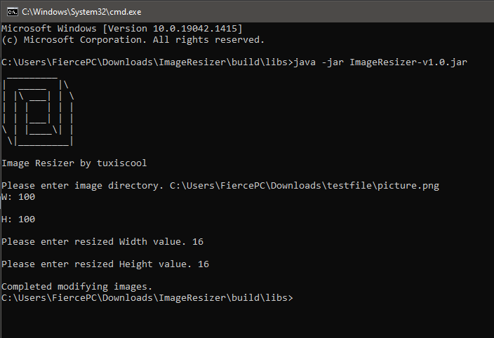 2) type [java -jar ImageResizer-v1.0.jar] (without the []).
