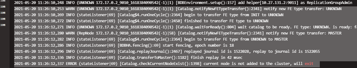 但是删除metadata_failure_recovery=true配置后报错 current node is not added to the cluster, will exit