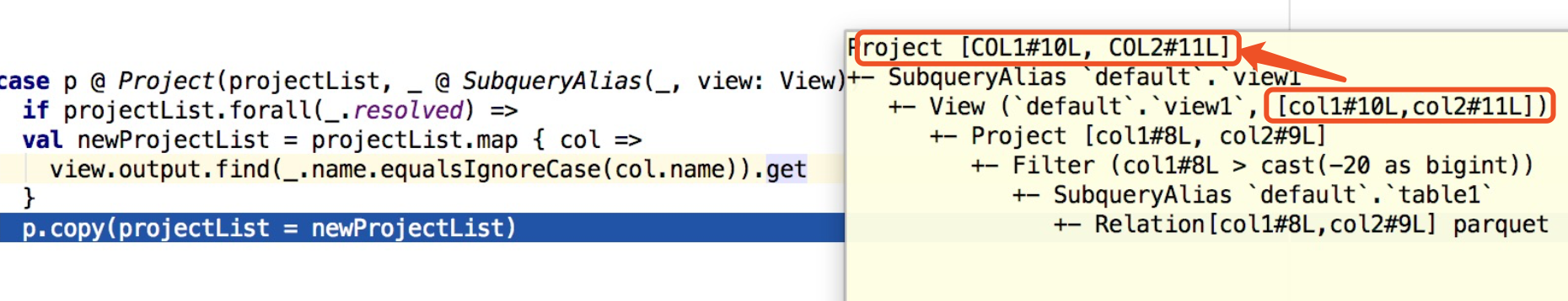 !+- Project [col1#8L AS col1#10L, col2#9L AS col2#11L] +- Project [col1#8L, col2#9L]