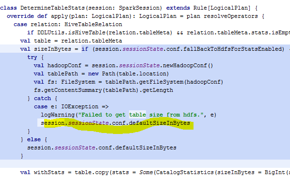 I think this rule will return default stats always unless we make session.sessionState.conf.fallBackToHdfsForStatsEnabled as true, i will reconfirm this behaviour.
