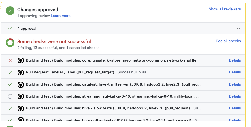 But it seems working fine in general though .. hm .. there seems a hole somewhere. let me monitor a bit more. cc @dongjoon-hyun, @maropu, @viirya, @Ngone51, @ulysses-you, @LuciferYang FYI. |