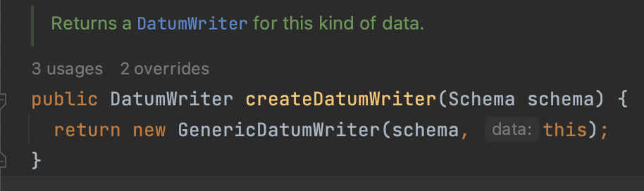 | this.mAvroFileWriter = new DataFileWriter(dataModel.createDatumWriter(writerSchema)); | ||