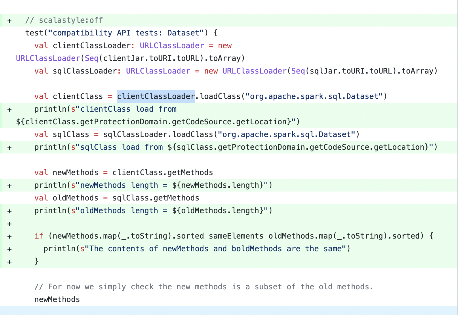 | val clientClass = clientClassLoader.loadClass("org.apache.spark.sql.Dataset") |