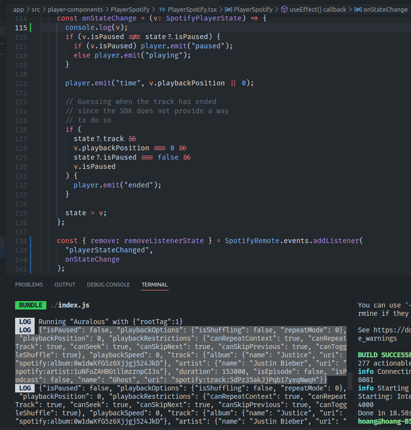 , which would break if I try to attach the methods directly on the object.The latest commit succeeded in maintaining the event emitter API. I have not added back some of the APIs that are not commonly used (See https://github.com/cjam/react-native-spotify-remote/pull/189/files#diff-2cdc799d0278758d580b911374652f261c50cb134076f329d0ab0b406bcd2623), but we can do it if we want to.