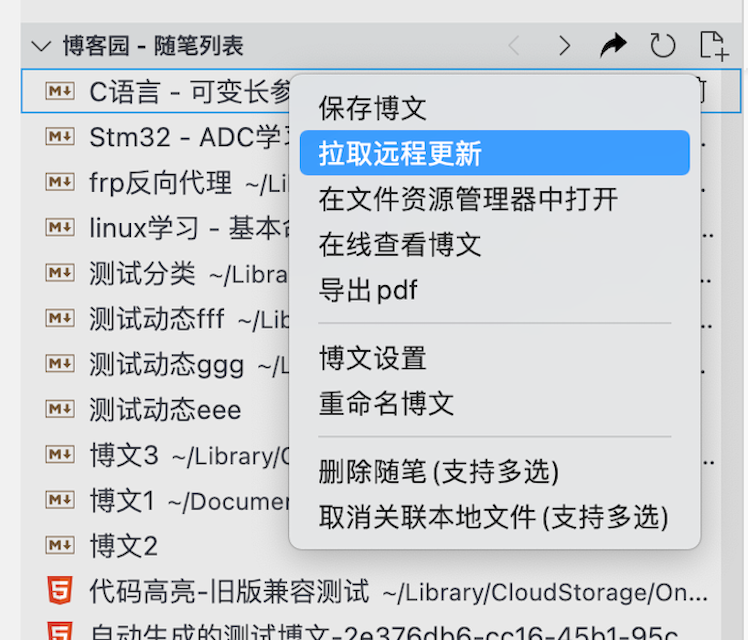 拉取博文(仅已关联本地文件的博文) -