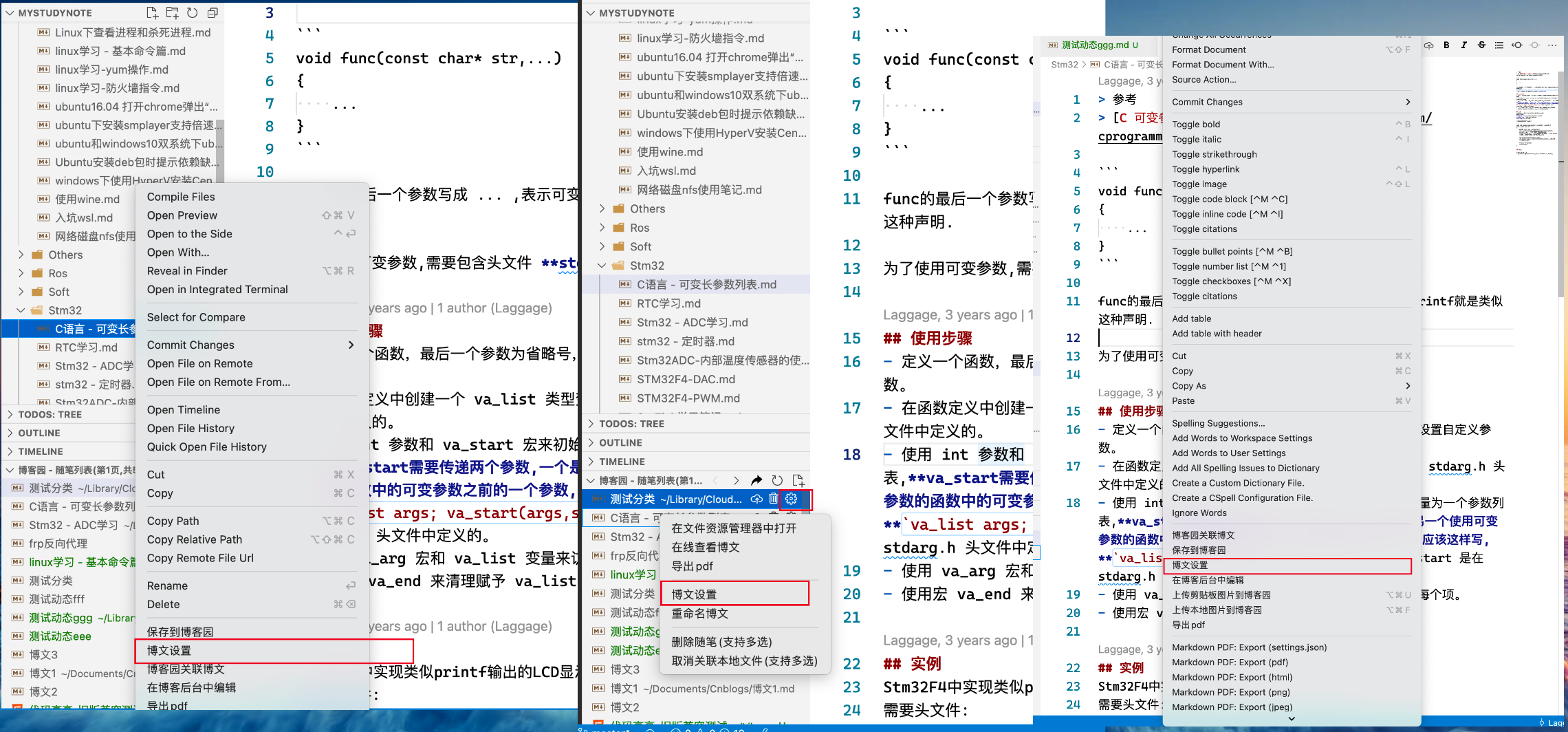 同时,也可以在博客园随笔列表视图,文件列表视图和 markdown 编辑器中上下文菜单中可以通过博文设置命令打开博文设置面板。