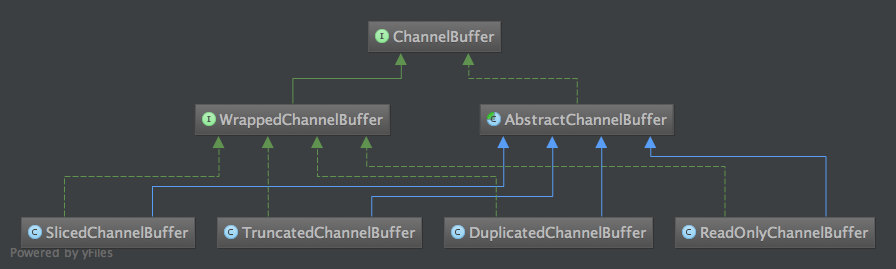 ReadOnlyChannelBuffer | ChannelBuffers.unmodifiableBuffer(ChannelBuffer) | 只读,你懂的 |