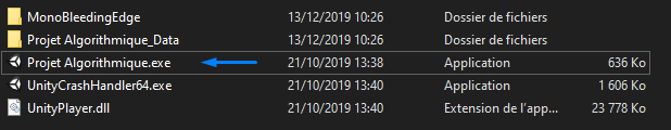 - Pour lancer le projet il vous suffit de télécharger le .rar ci-dessus et de l'extraire dans un dossier quelconque puis il vous faut lancer l'exécutable nommé ProjetAlgorithmique.exe.
