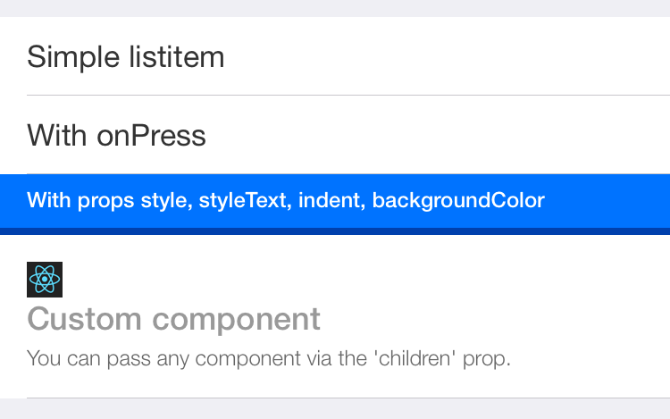 react-native-listitem acts as a quick default for iOS-native styling of a listitem