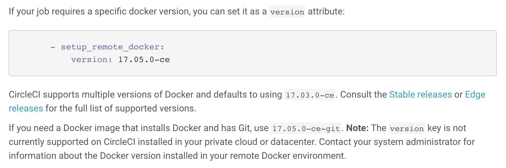 related discussion on the CircleCI forum; https://discuss.circleci.com/t/docker-18-09-support-for-setup-remote-docker/26731 |