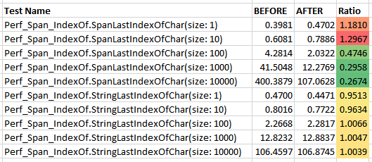'a'.LastIndexOf('a'); // Expected: 0, Actual: -1We have to pass in Length - 1 as the startIndex since the character at position startIndex is included in the search. Which means, we have to special case Length == 0, as well.