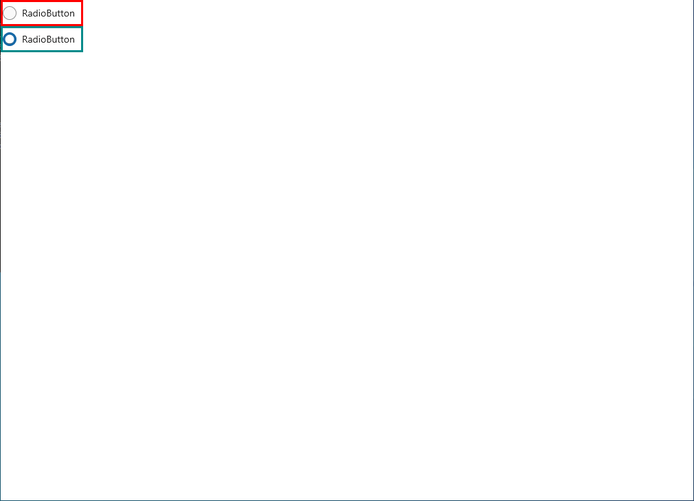 I think there are some inconsistencies with how the RadioButton behaves across platforms. In the added sample, the normal and focused states use different colors—Red and DarkCyan, respectively.