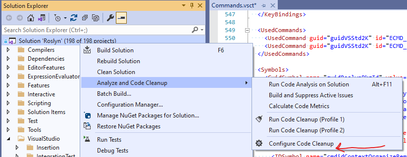 Solution Explorer should allow configuration of the background analysis scope for a specific solution by the following: