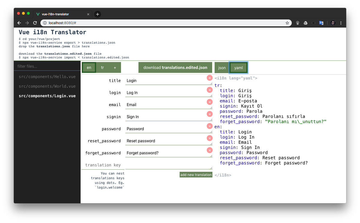 file which you've just generated. It will parse it and generate an useful interface to translate.