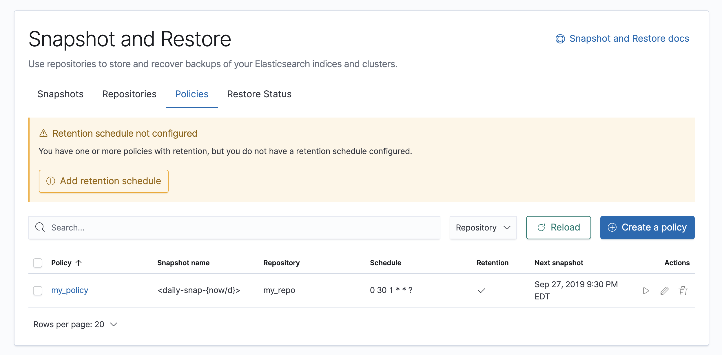 slm.retention_schedulecluster setting has not be set, a callout will display.A user has the ability to edit the