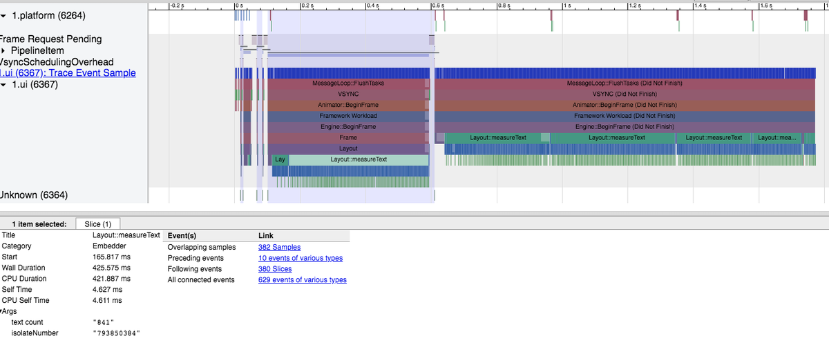 We found that it cost a very long time to measure a Chinese paragraph for Text Widget. As the picture shown, the Layout::measureText function takes more than 400ms.