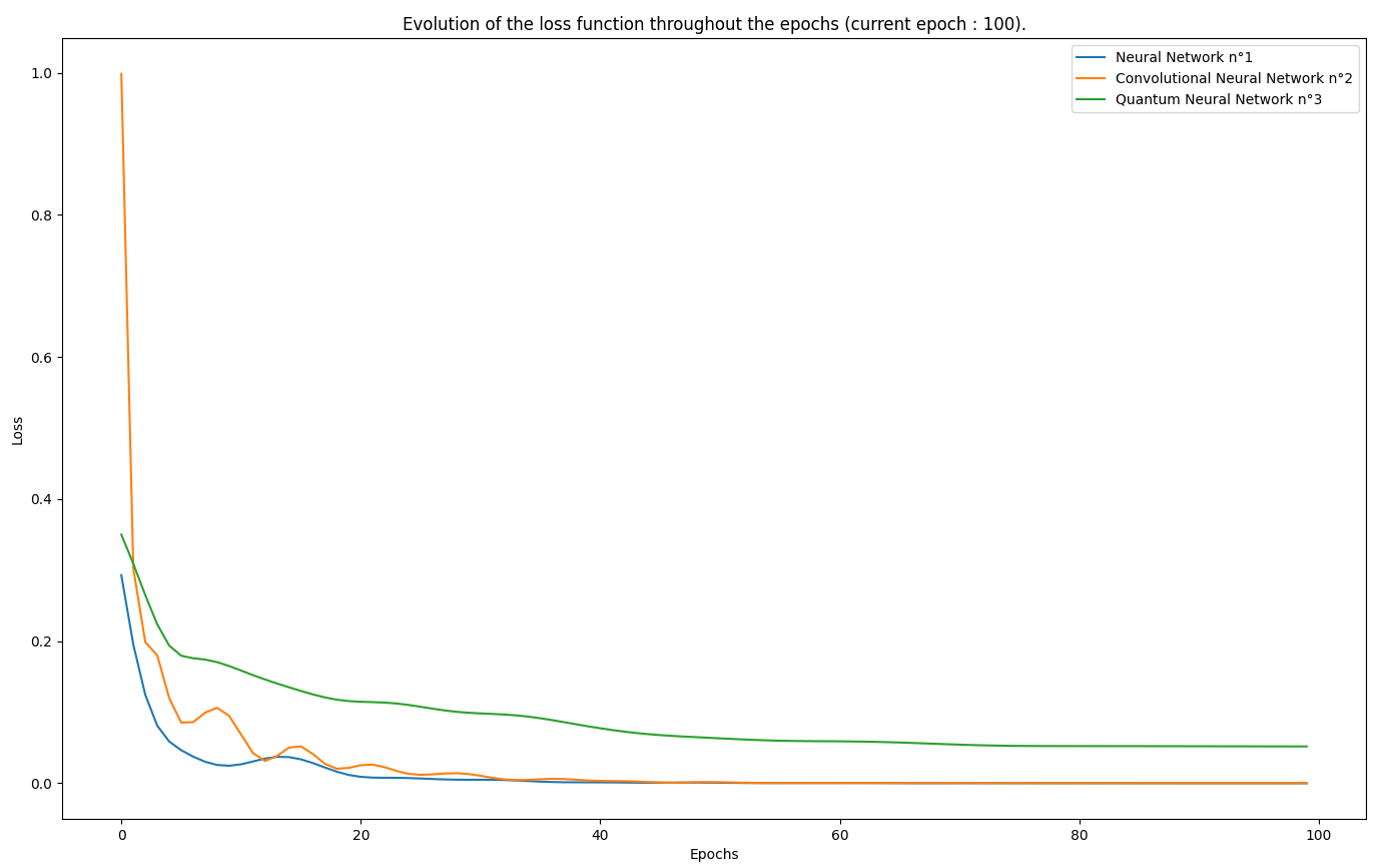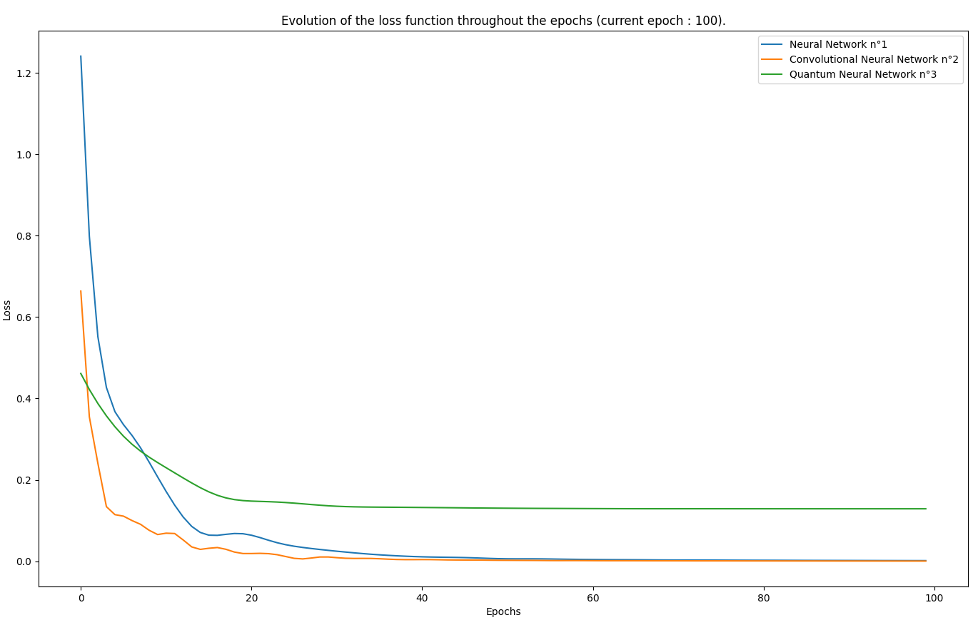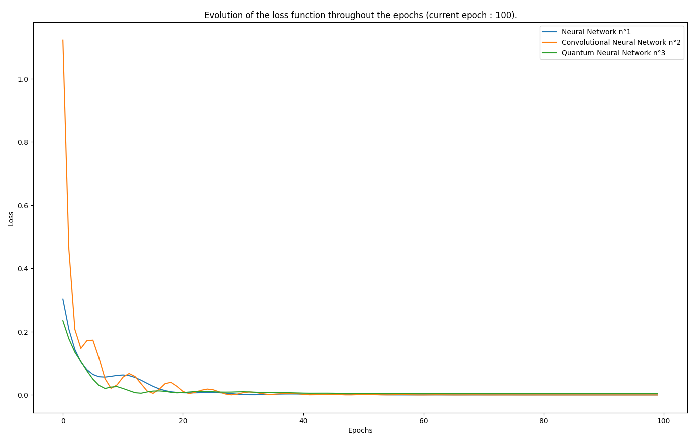 Number of neural networks : You can either create one or several neural networks if you want to compare them on a specific dataset. You can modify their parameters (learning rate, loss function...) in their respective files "NeuralNetwork.py" and "QuantumNeuralNetwork.py" in the constructor of each class.