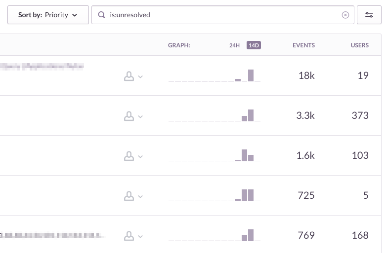 A customer requested the ability to filter/sort by the number of users affected rather than just the event frequency. Sorting by Priority doesn't really address this: