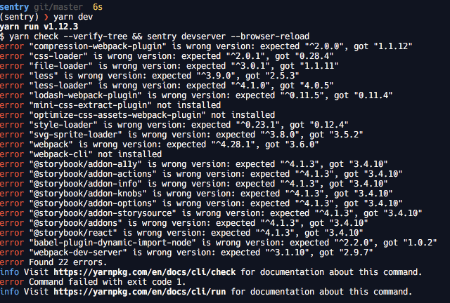 yarn check --verify-treebefore starting to make sure that yarn deps are up to date.