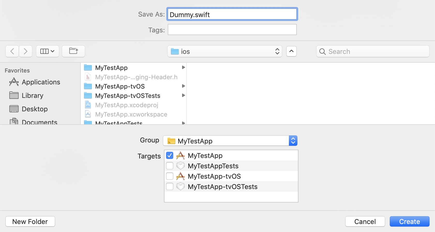 - Specify name for example Dummy.swift➜Create