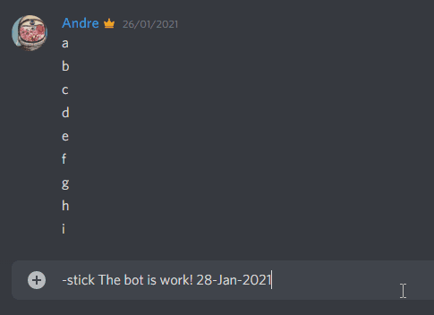 This bot gonna send your stickied message after few message.