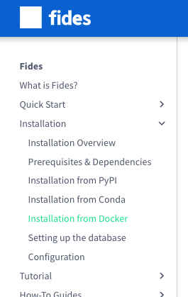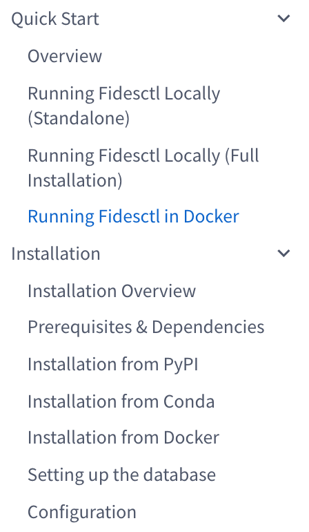 I decided to put the full Installation instruction in the Installation from Docker section. But it raises a similar question with the Release Cadence and Installation from before: what will the developer's path through the documentation be? I see a few more options: move Quick Start below Installation and before Tutorial, combine Quick Start and Installation for Docker, or have those instructions in Quick Start since it will come first. The last would likely be the quickest, since I see the other two as larger refactors. What are your thoughts here? |