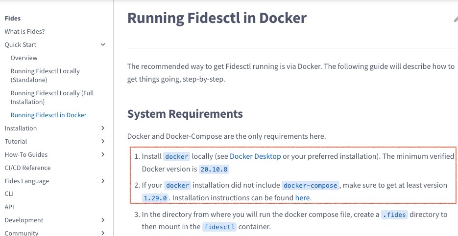 "Running Fidesctl in Docker" contains the same instructions you've included here from the System Requirements section. In your opinion, does it make sense to have it in both places? (this is not a leading question! and you don't have to update the PR if you don't feel it's necessary, I want to understand your opinion on this)