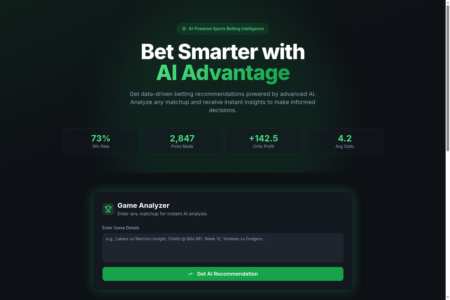 - Game Analyzer - Enter any matchup for instant AI analysis and betting recommendations