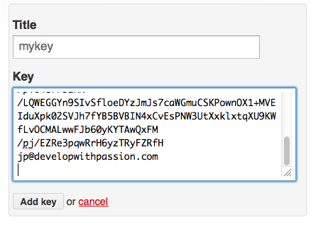 Give your key a title and paste the public key that is in your clipboard from step 4 into the Key text entry:
