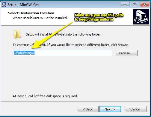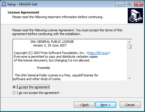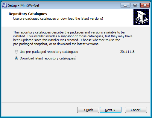 explorer .Double click the mingw-get-inst-20111118.exe installer and install using the following screenshots: