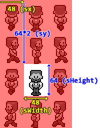 With this, you'll get an animation which will start at 64 pixels and will end at 192 pixels from the offset top of the spritesheet. Of course, if the animDirection