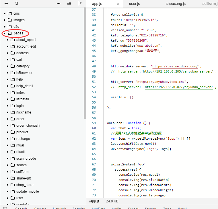 打开项目的主目录,找到app.js文件,修改以下内容