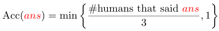 I use the evaluation metric which is robust to inter-human variability in phrasing the answers:
