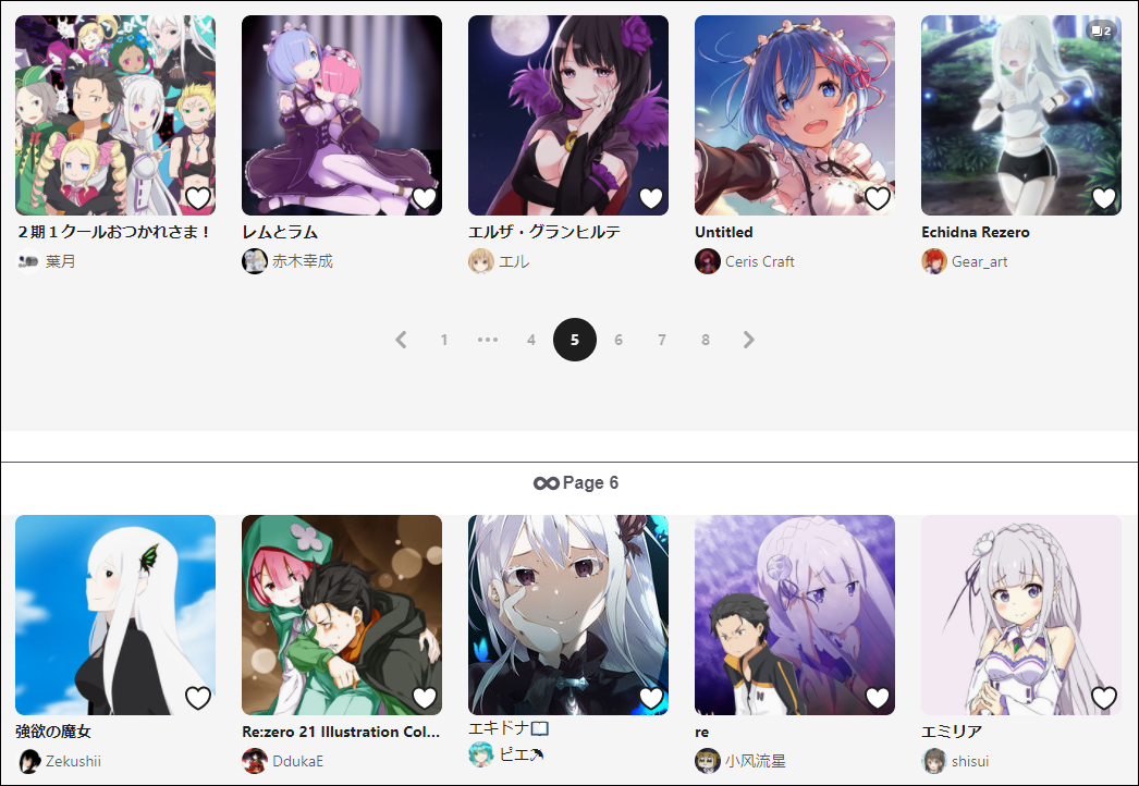 - Example URL: https://www.pixiv.net/tags/Re:ゼロから始める異世界生活/illustrations