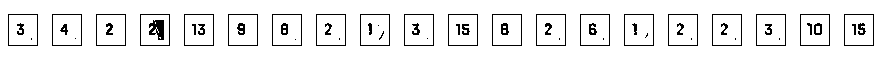 As you can see, many of the images have some small noise, resulting in extraneous connected components. Filtering by on pixels (this time the raw number of pixels rather than the proportion) and by the aspect ratio can correctly remove all the noise. This leaves us with the following digits.