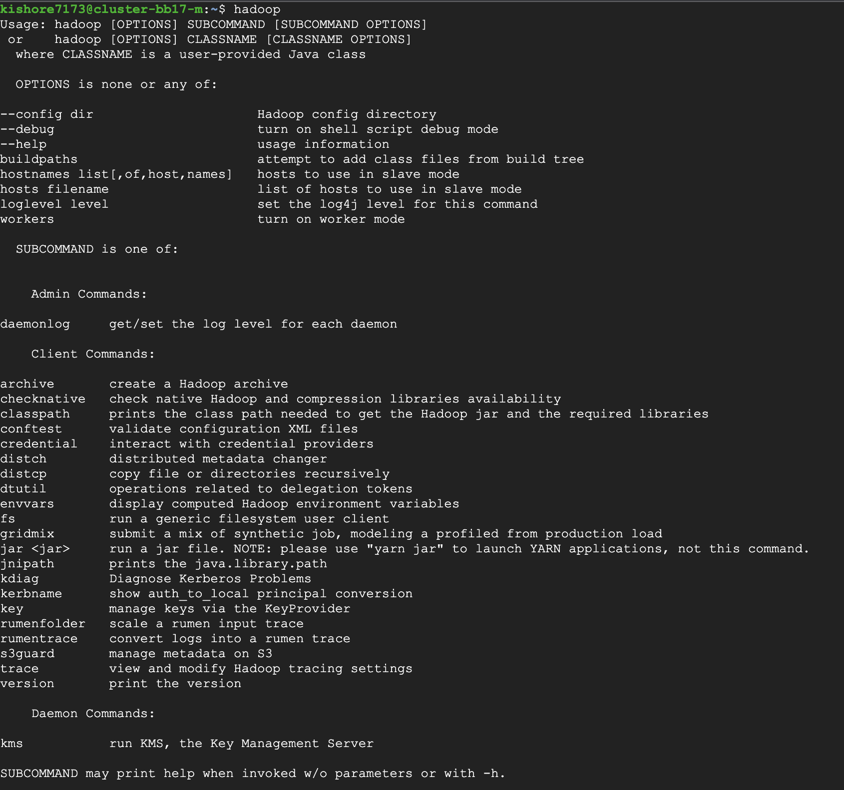 Open SSH session with Master node and verify hadoop installation is present