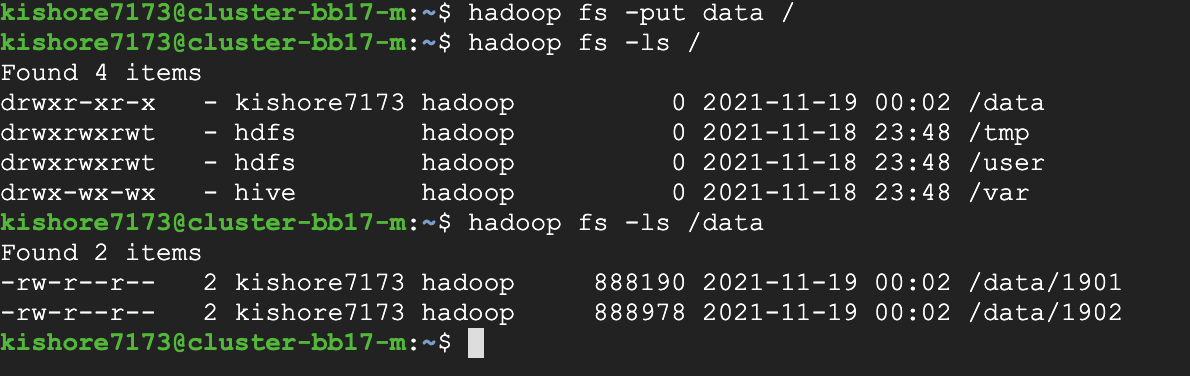 Export data from local file system to HDFS