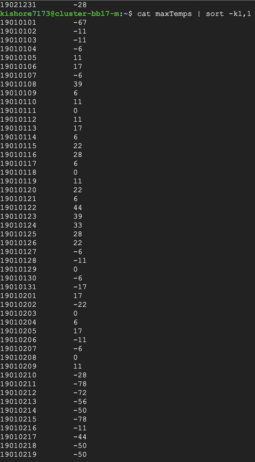 Sorting the output