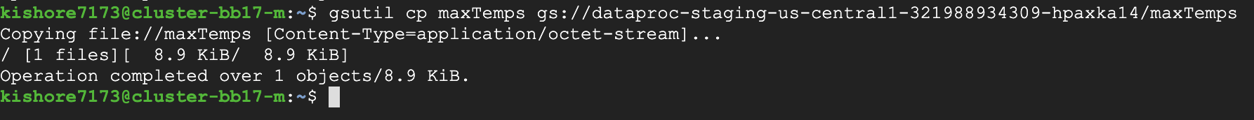 Export the output file to the GCP bucket