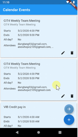 Example codes (with additional features) of Flutter device calendar plugin, display a list of events & allow interacting with the device's calendar