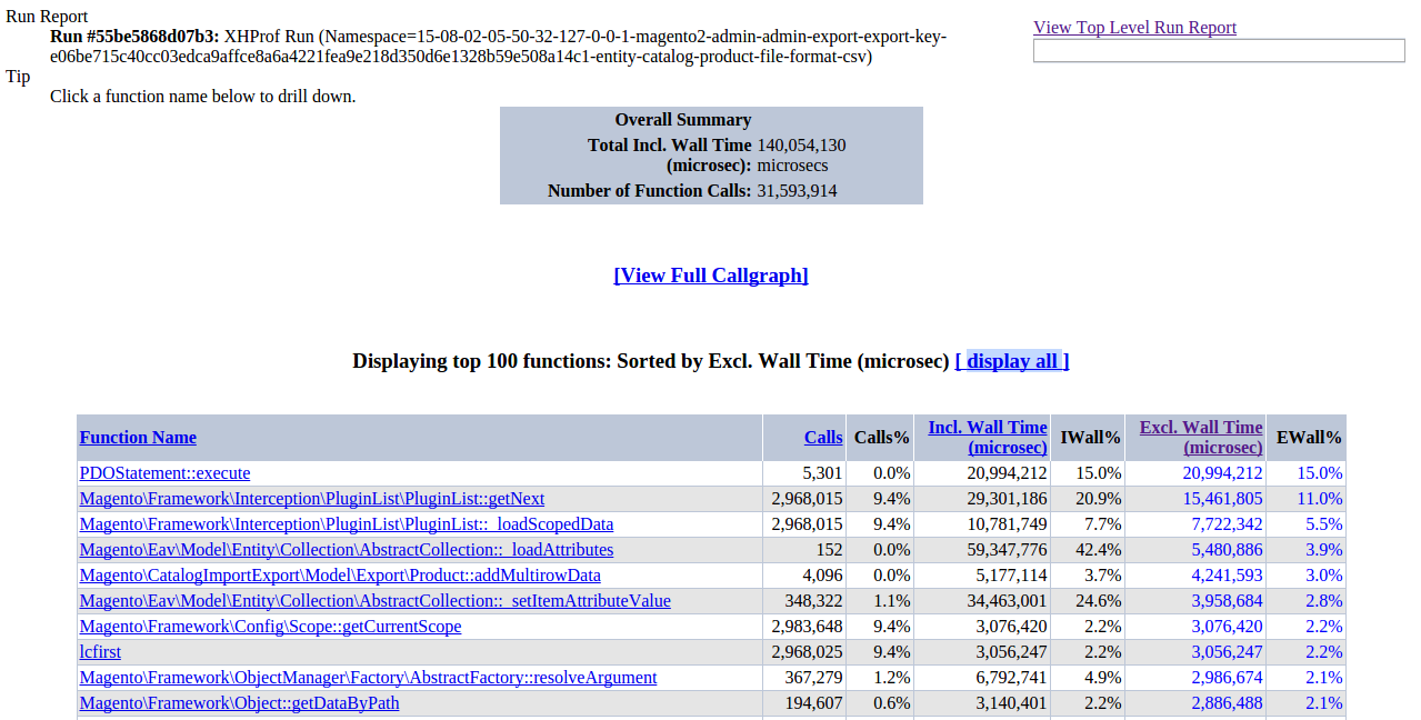 I used xhprof to profile the export method, see the commits c6342a8 and cb4a42b.