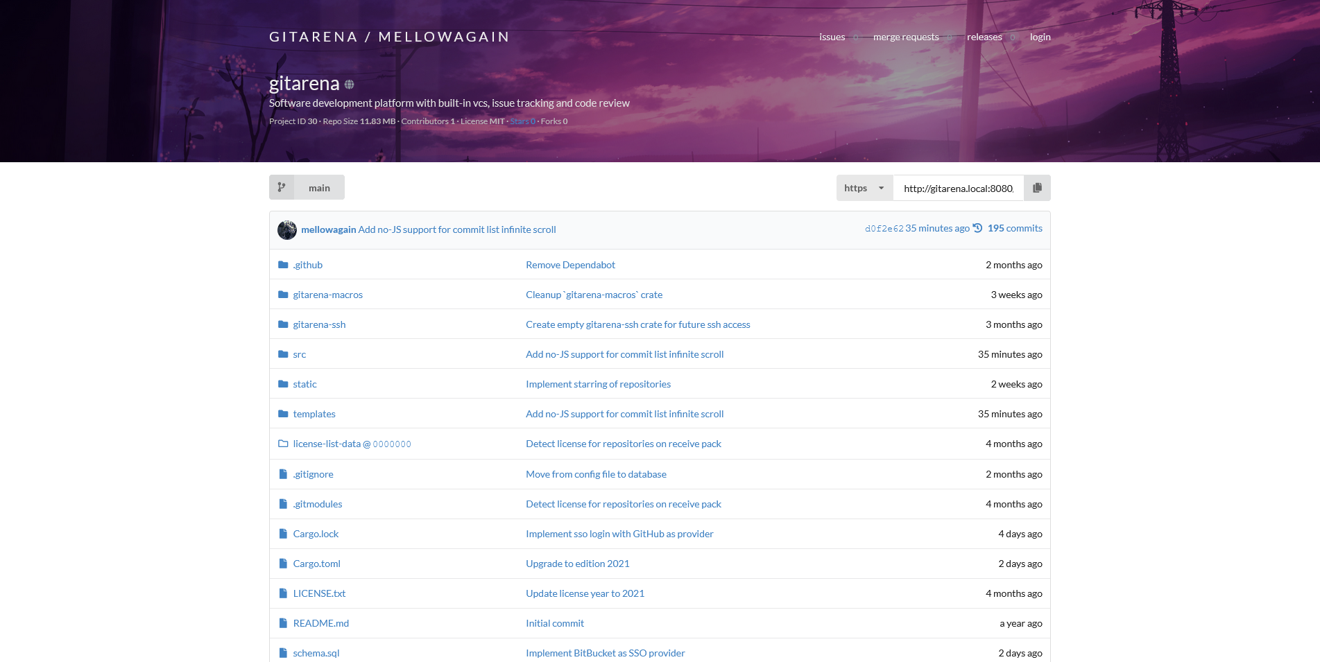 GitArena is a software development platform with built-in vcs, issue tracking and code review. It is meant as a lightweight and performant alternative to the likes of GitLab and Gitea, built with self-hosting and cross-platform/cross-architecture support in mind.